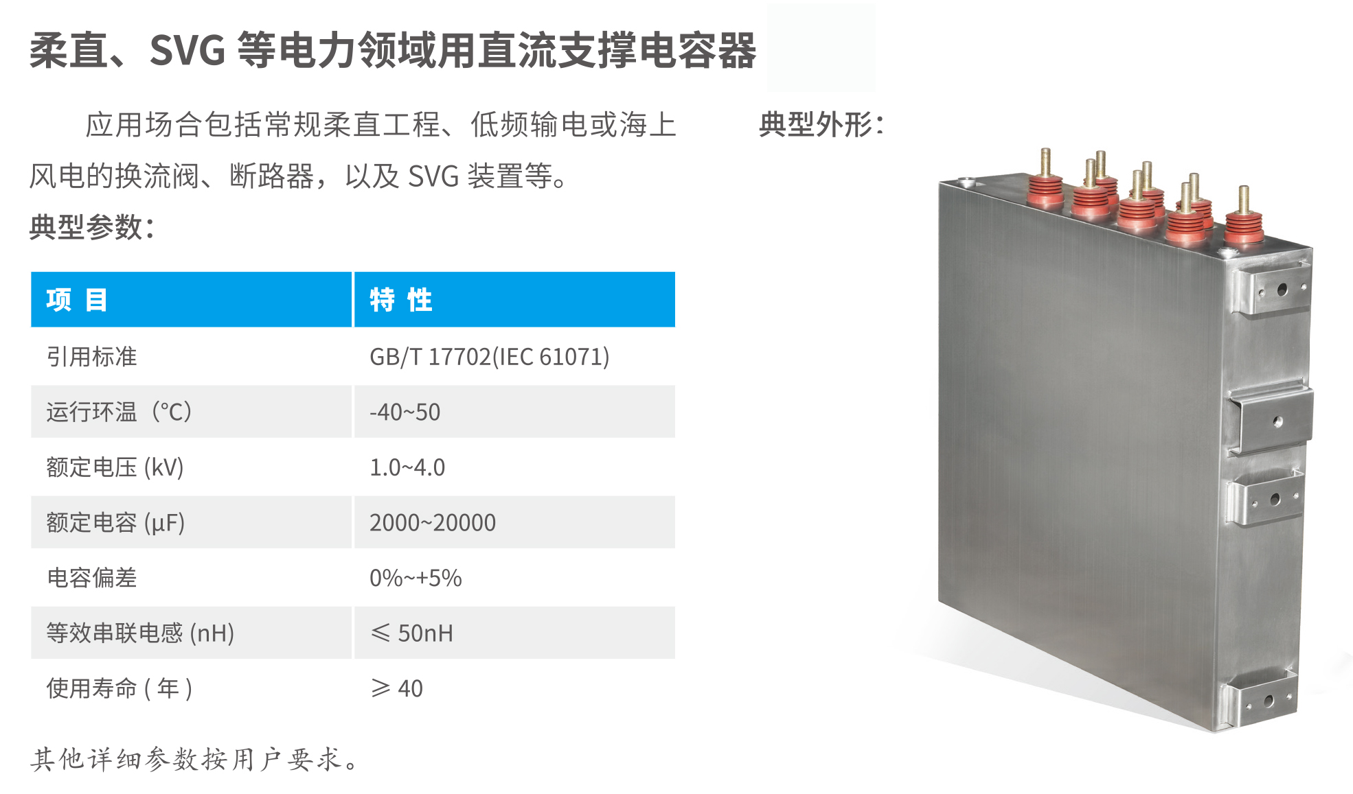 赛晶柔直用直流支撑电容器基础参数