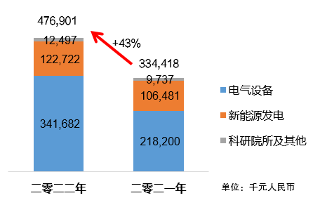 受益于采矿、冶金、新能源发电等下游行业处于高景气度周期、市场需求旺盛,本集团在工业及其他领域销售收入,较2021年增长43%。