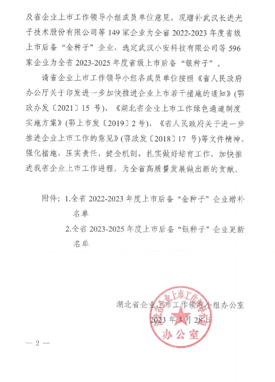 据了解,湖北省上市后备种子计划是为了深入贯彻省委、省政府提出的“十四五”期间实现上市企业和后备企业数量等“四个倍增”目标任务,健全分行业、分类别、分层次、分阶段上市后备企业培育机制,推进实施资本市场建设“楚天行动”。