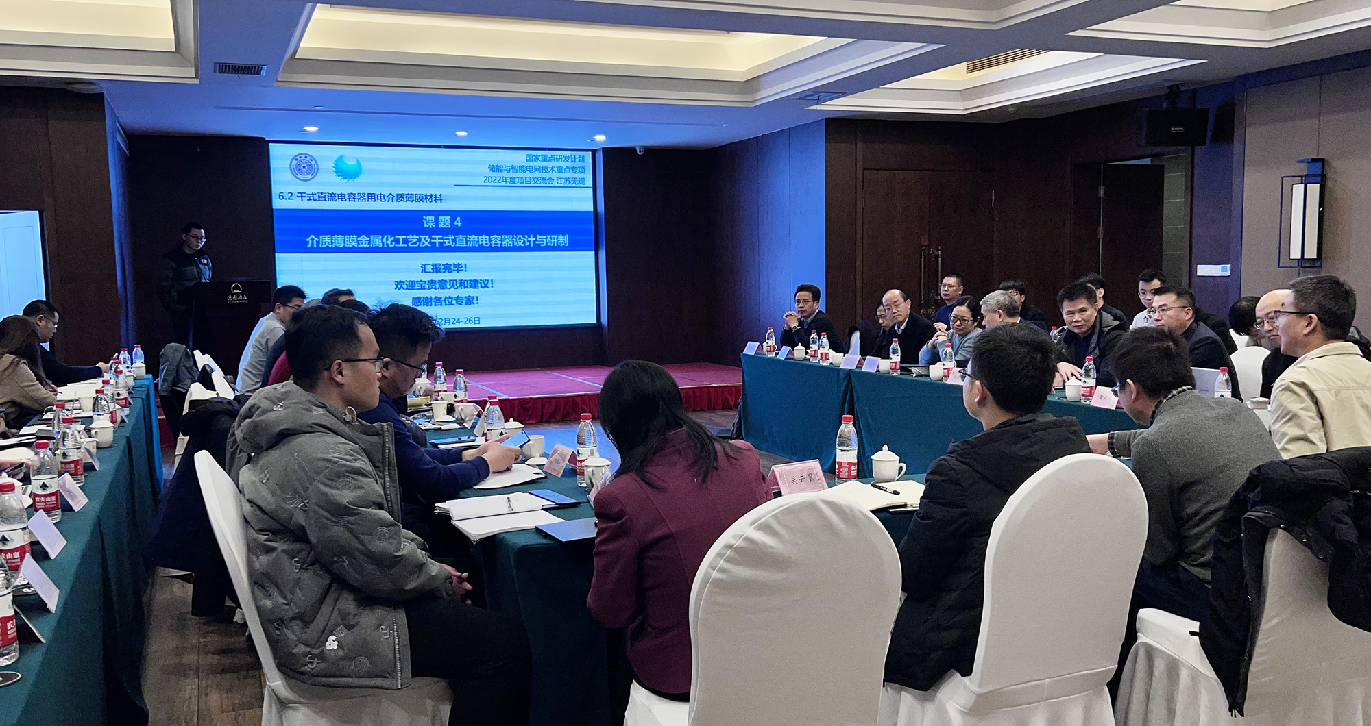 近日,由清华大学党智敏教授领衔的“储能与智能电网技术”国家重点研发计划-6.2“干式直流电容器用电介质薄膜材料”项目2022年度总结会在无锡顺利召开。会议由国家重点研发计划6.2“干式直流电容器用电介质薄膜材料”项目组主办,388vip太阳集团成员企业-无锡赛晶电力电容器有限公司(以下简称:无锡赛晶)承办。