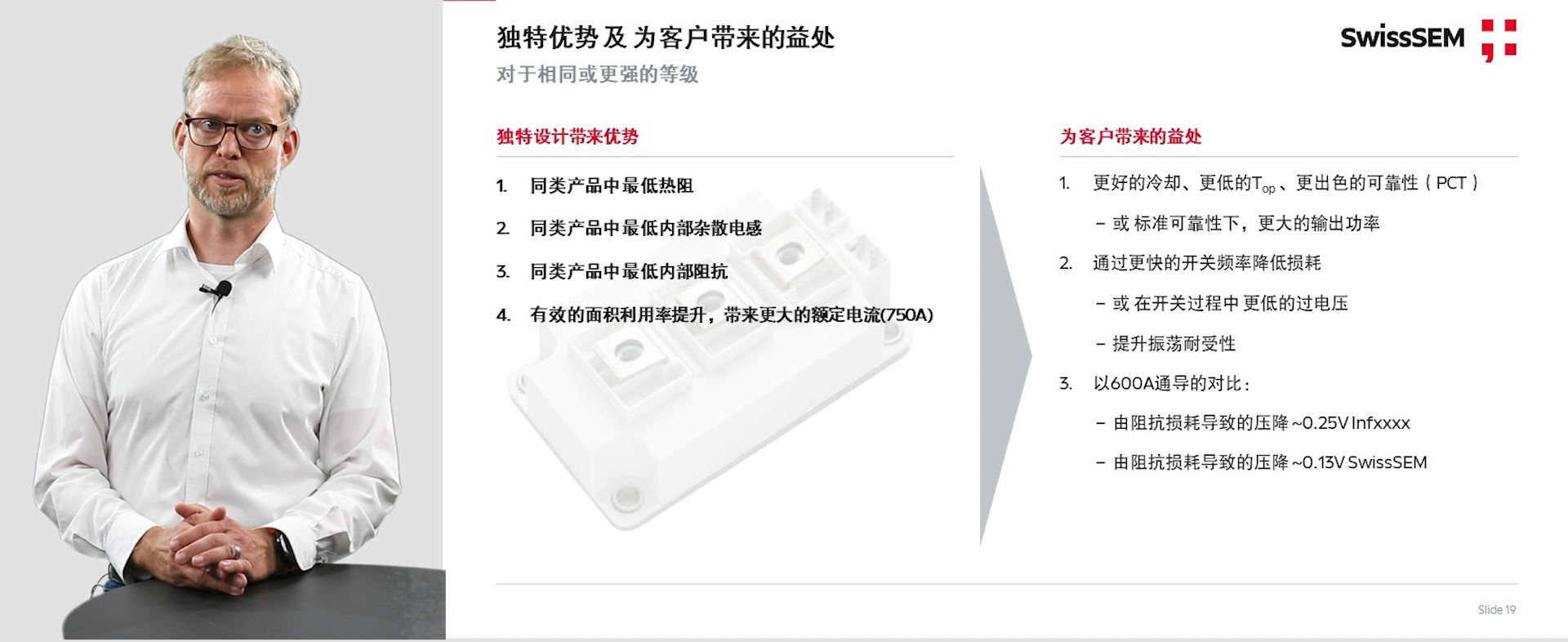 论坛上,388vip太阳集团瑞士子公司SwissSEM首席运营官Sven先生,通过视频的方式发表主题报告“工业级和车规级IGBT的创新与突破”。介绍了赛晶i20 IGBT芯片组、ED封装IGBT模块的优势及特点,并首次发布了面向新能源汽车领域的HEEV封装SiC模块,以及面向新能源发电和工业电控领域的ST封装模块。这是继ED封装IGBT模块之后的又一力作,也是赛晶在工业级与车规级IGBT领域的又一次创新与突破。