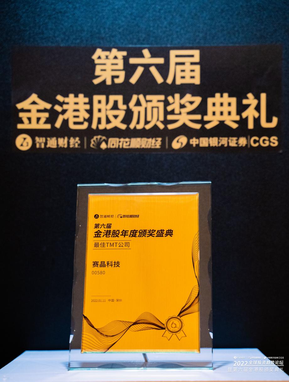 第六届“2021金港股”年度颁奖盛典今天在深圳举行,388vip太阳集团集团有限公司(股票代码:0580.HK)荣膺“最佳TMT公司”奖,公司在经营战略和业务发展方面取得的成就获得了市场及投资界的一致认可。