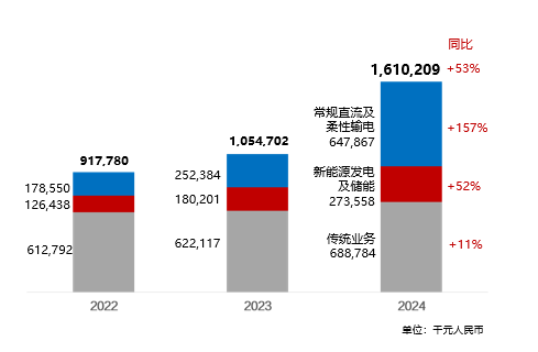 取得如此出色的成绩,主要源于自2023年起常规直流输电和柔性输电开启新一轮的投资建设,并于2024年开始批量交付。在常规直流领域,金上-湖北、哈密-重庆、宁夏-湖南三大“西电东送”工程相继高质量交付;在柔直输电领域,交付了德国BorWin6、阳江青州、华能玉环等多个海上风电柔性输电工程,以及四川、西藏SVG构网项目。此外,沙特中南柔直、甘肃-浙江特高压柔直陆续启动,以及十余个直流输电工程正有序推进前期工作,将为本集团业务规模的长期、快速提升带来极佳的助力。