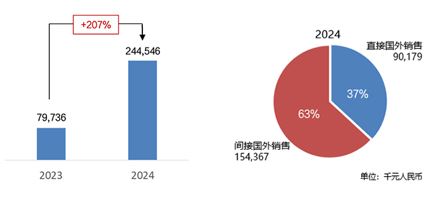 在全球能源结构加速转型的浪潮下,本集团积极布局海外市场。根据国际能源署(IEA)《电力2025》报告显示,由于工业用电、空调等居民用电、电动汽车,以及人工智能等新兴产业用电的全面上升。2024年全球用电量增长4.3%,且未来三年将保持年增长4%高速增长,为中国电力装备企业走向国外市场带来了绝佳的市场机遇。本集团积极践行“走出去”战略,着重加强国外市场的业务推广力度,取得显著成效。2024年国内外子公司直接面向国外客户的销售收入(简称“国外直接销售收入”)达到90,179千元人民币,供给国内客户并最终用于国外市场的销售收入(简称“国外间接销售收入”)达到了154,367千元人民币,两项合计244,546千元人民币,同比增长207%。国外销售总收入占本集团销售收入的比重已超过15%,成为了业务增长的一个重要动力。