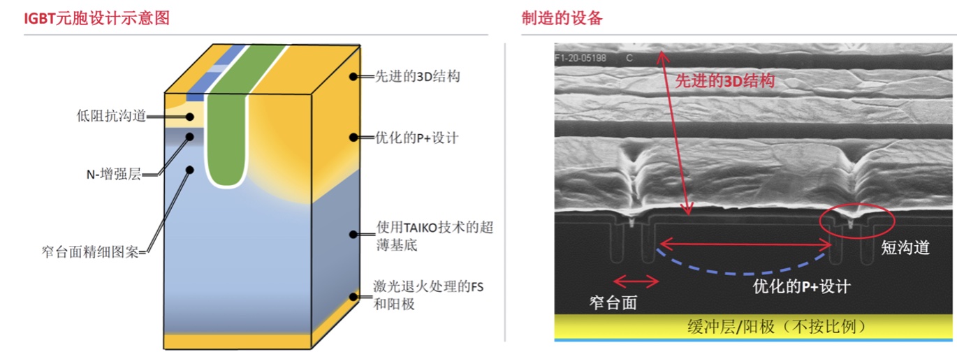 电动汽车朝着大功率密度、高安全性和低成本的方向前进时,功率器件的电流密度、功率损耗以及可靠性起着关键性作用。元胞、体结构优化和智能集成技术是实现上述目标的根本途径。未来IGBT器件将向着槽栅结构、精细化图形、载流子注入