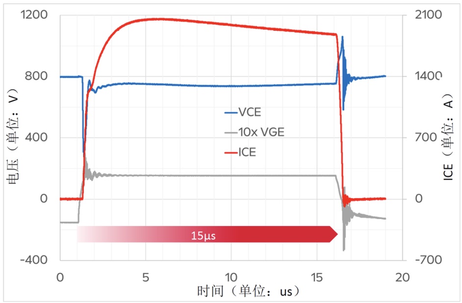 增加电流IC=1500A (=2.5倍标称)2000A (>3倍),VDC=800V